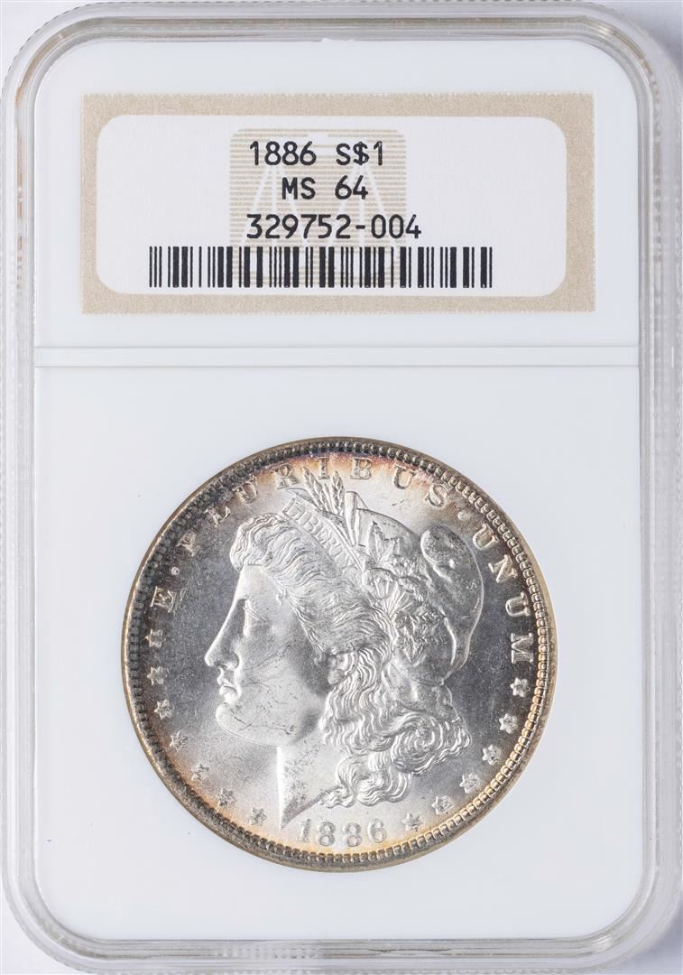 One 1886 $1 Morgan Silver Dollar Coin NGC MS64. NGC Certified.