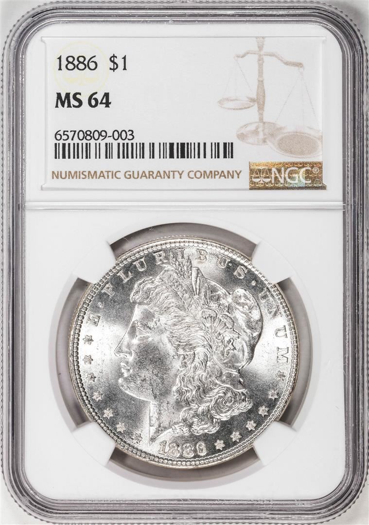 One 1886 $1 Morgan Silver Dollar Coin NGC MS64. NGC Certified.