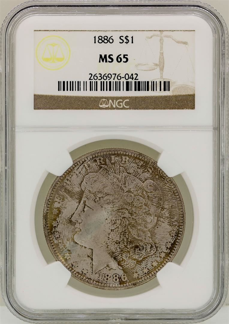 One 1886 $1 Morgan Silver Dollar Coin NGC MS65. NGC Certified.