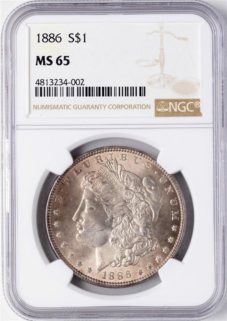 One 1886 $1 Morgan Silver Dollar Coin NGC MS65. NGC Certified.