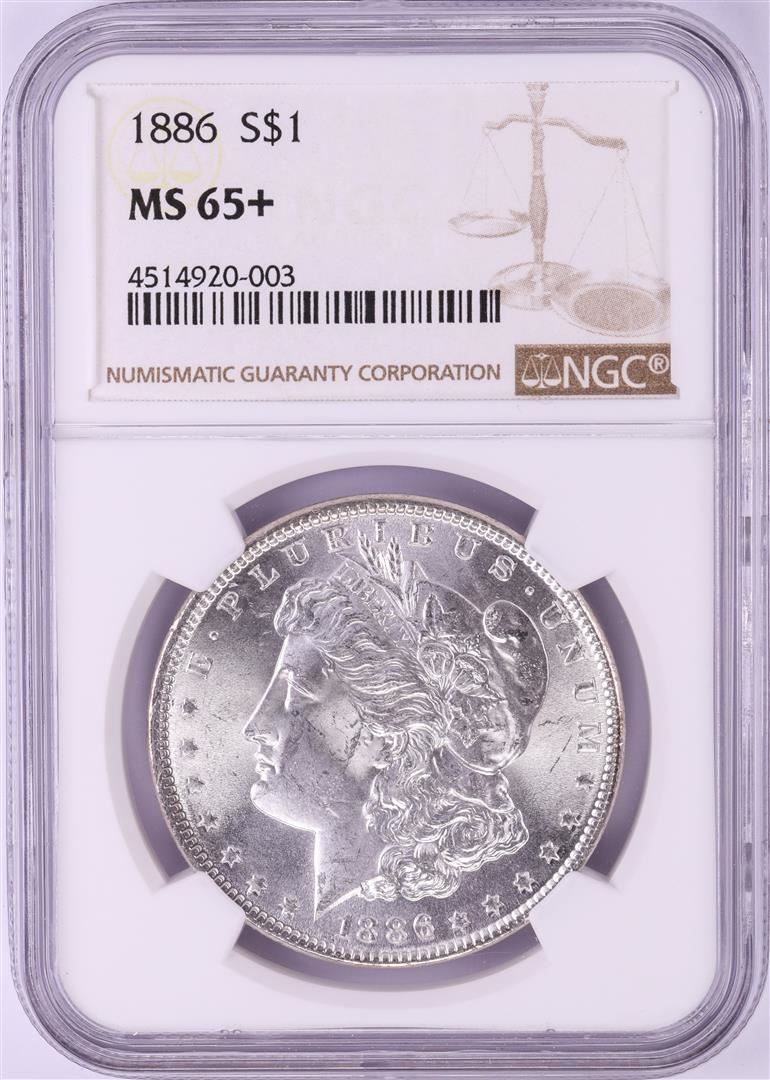 One 1886 $1 Morgan Silver Dollar Coin NGC MS65+. NGC Certified.