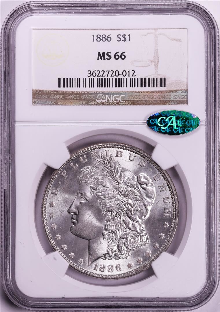 One 1886 $1 Morgan Silver Dollar Coin NGC MS66 CAC. NGC Certified.
