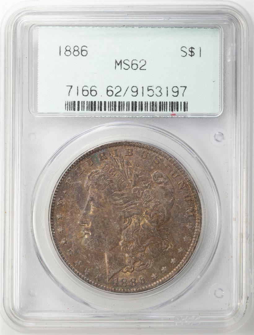 1886 $1 Morgan Silver Dollar Coin PCGS MS62 OGH