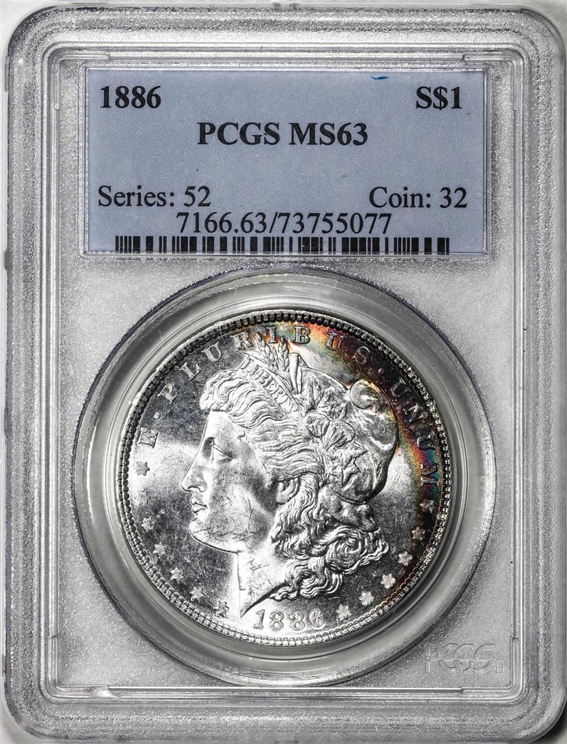 1886 $1 Morgan Silver Dollar Coin PCGS MS63 Amazing Toning