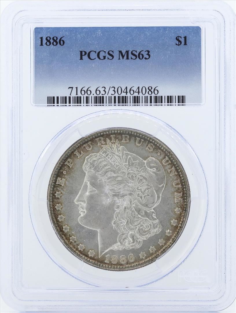 One 1886 $1 Morgan Silver Dollar Coin PCGS MS63. PCGS Graded.