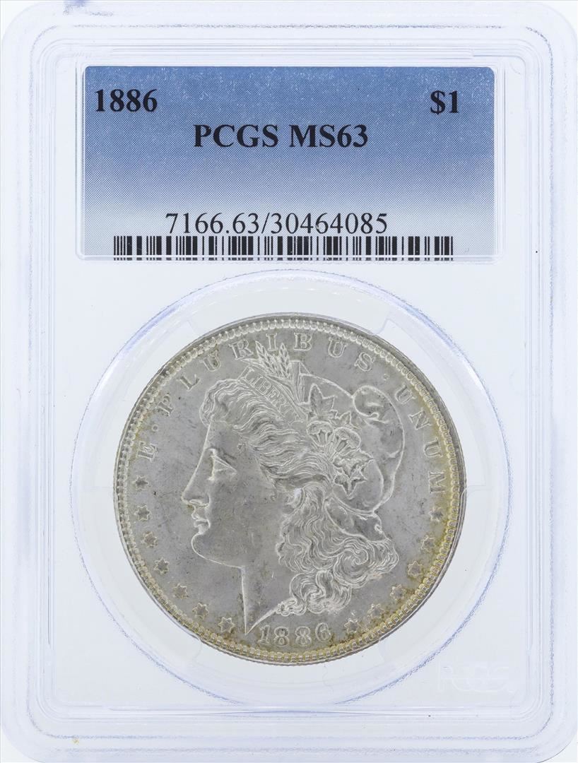 One 1886 $1 Morgan Silver Dollar Coin PCGS MS63. PCGS Graded.