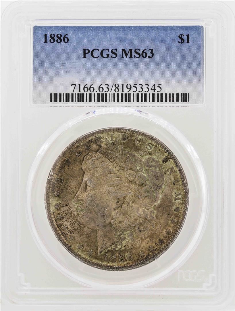 One 1886 $1 Morgan Silver Dollar Coin PCGS MS63. PCGS Graded.