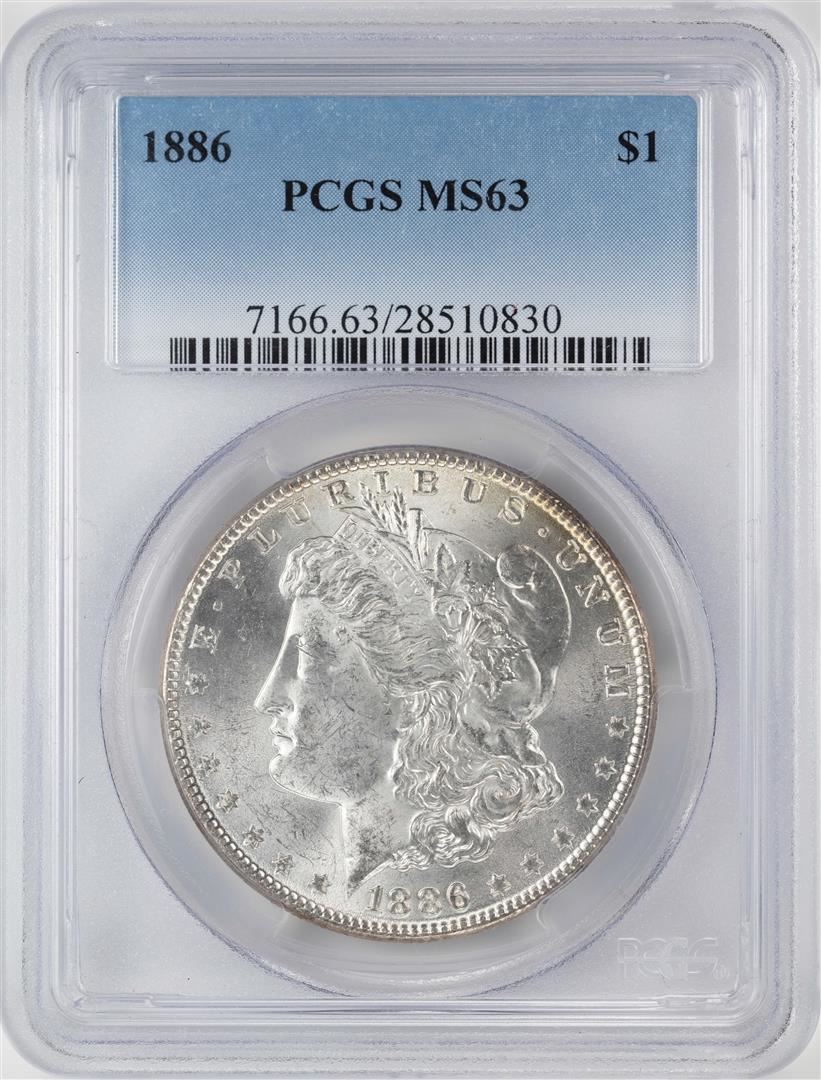 One 1886 $1 Morgan Silver Dollar Coin PCGS MS63. PCGS Graded.