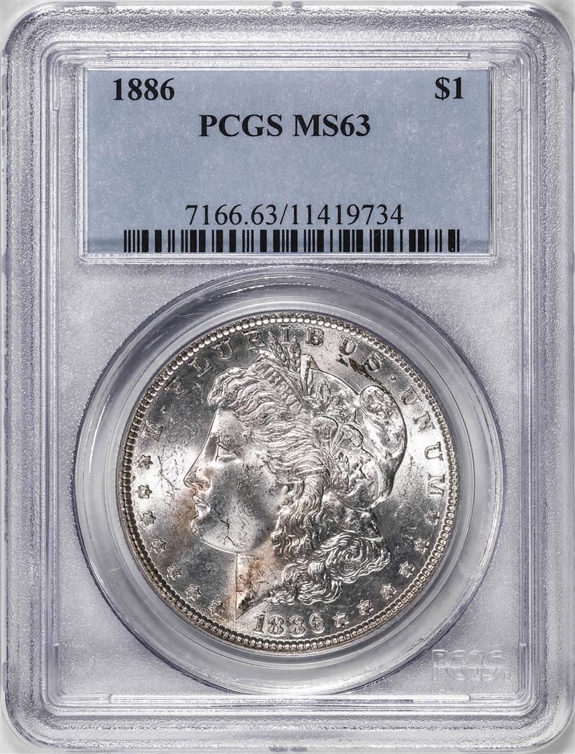 One 1886 $1 Morgan Silver Dollar Coin PCGS MS63. PCGS Graded.