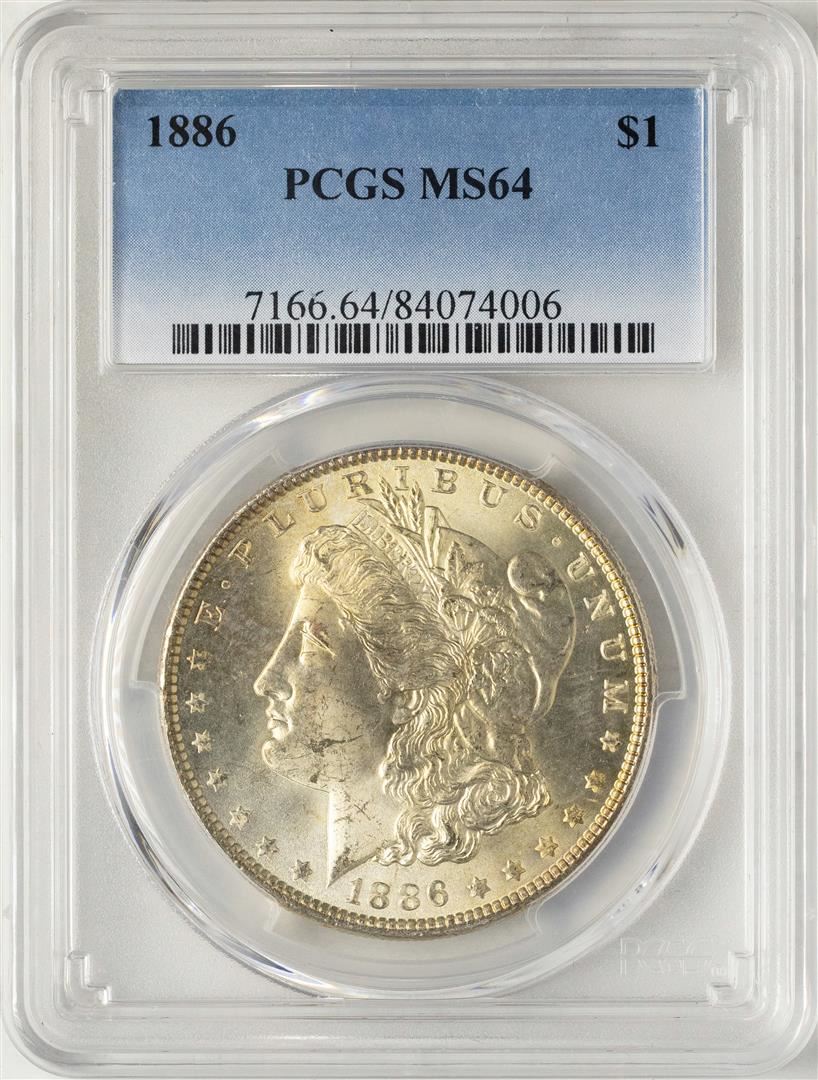 1886 $1 Morgan Silver Dollar Coin PCGS MS64 Nice Reverse Toning