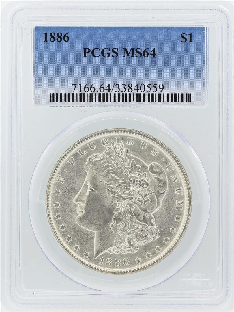 One 1886 $1 Morgan Silver Dollar Coin PCGS MS64. PCGS Graded.