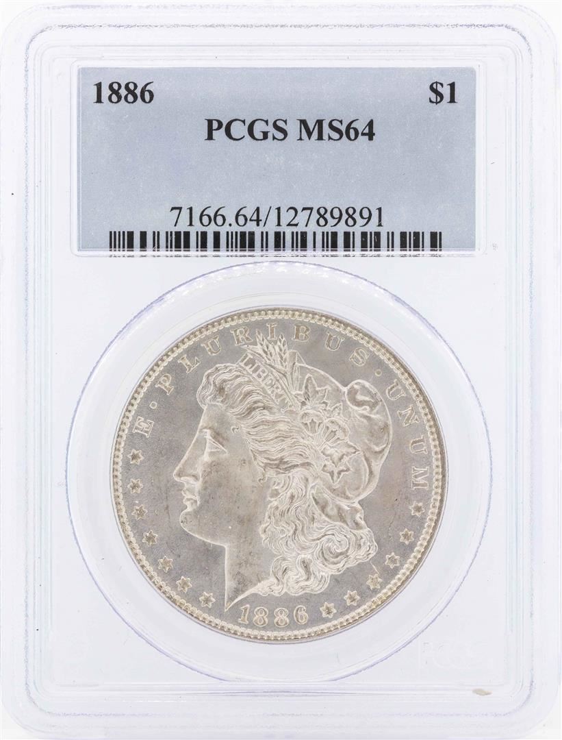 One 1886 $1 Morgan Silver Dollar Coin PCGS MS64. PCGS Graded.
