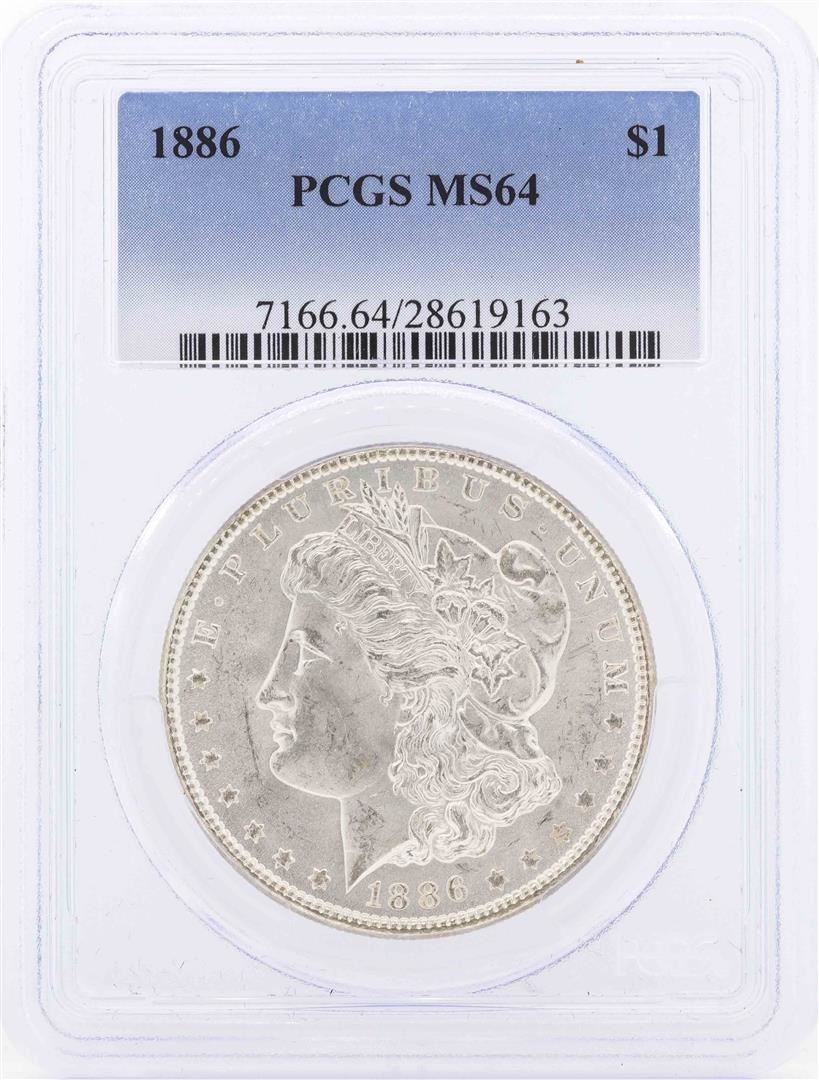 One 1886 $1 Morgan Silver Dollar Coin PCGS MS64. PCGS Graded.
