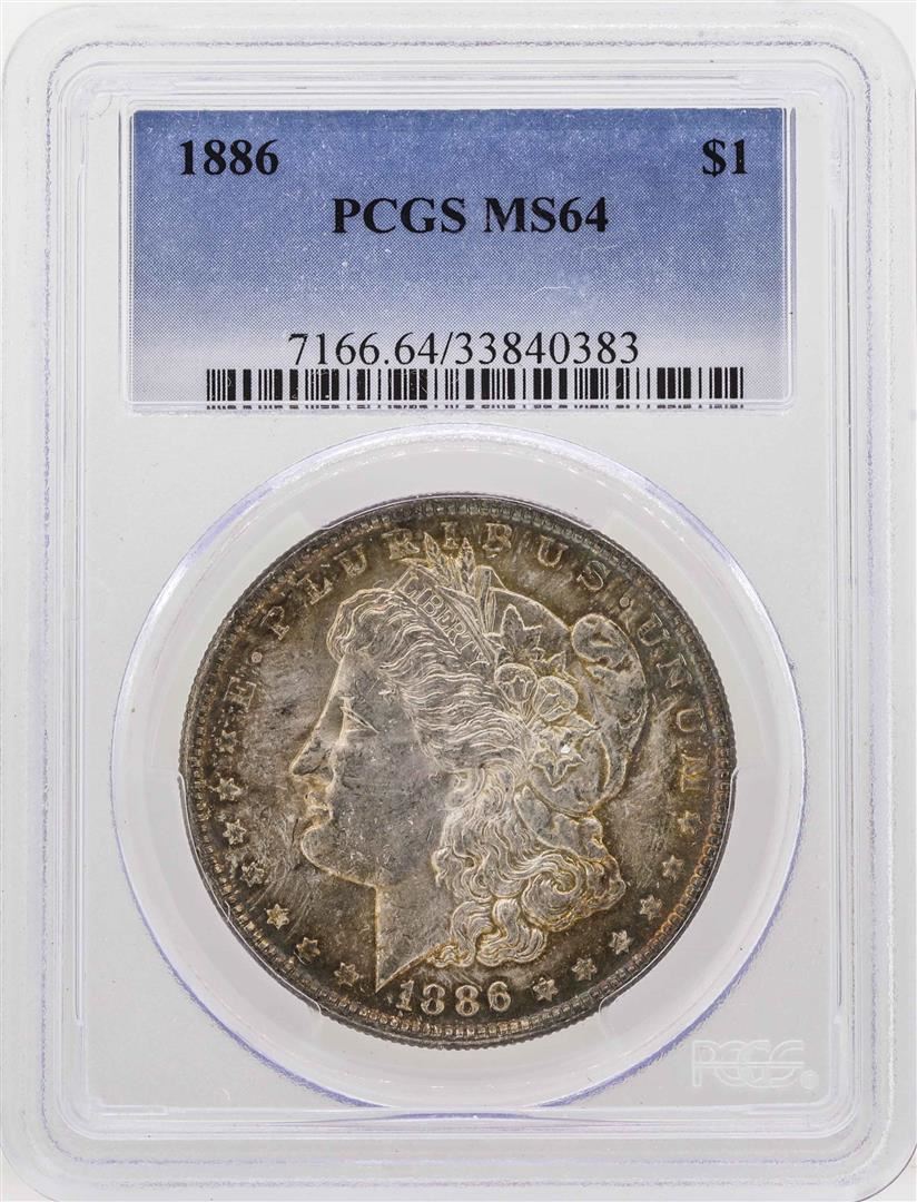 One 1886 $1 Morgan Silver Dollar Coin PCGS MS64. PCGS Graded.