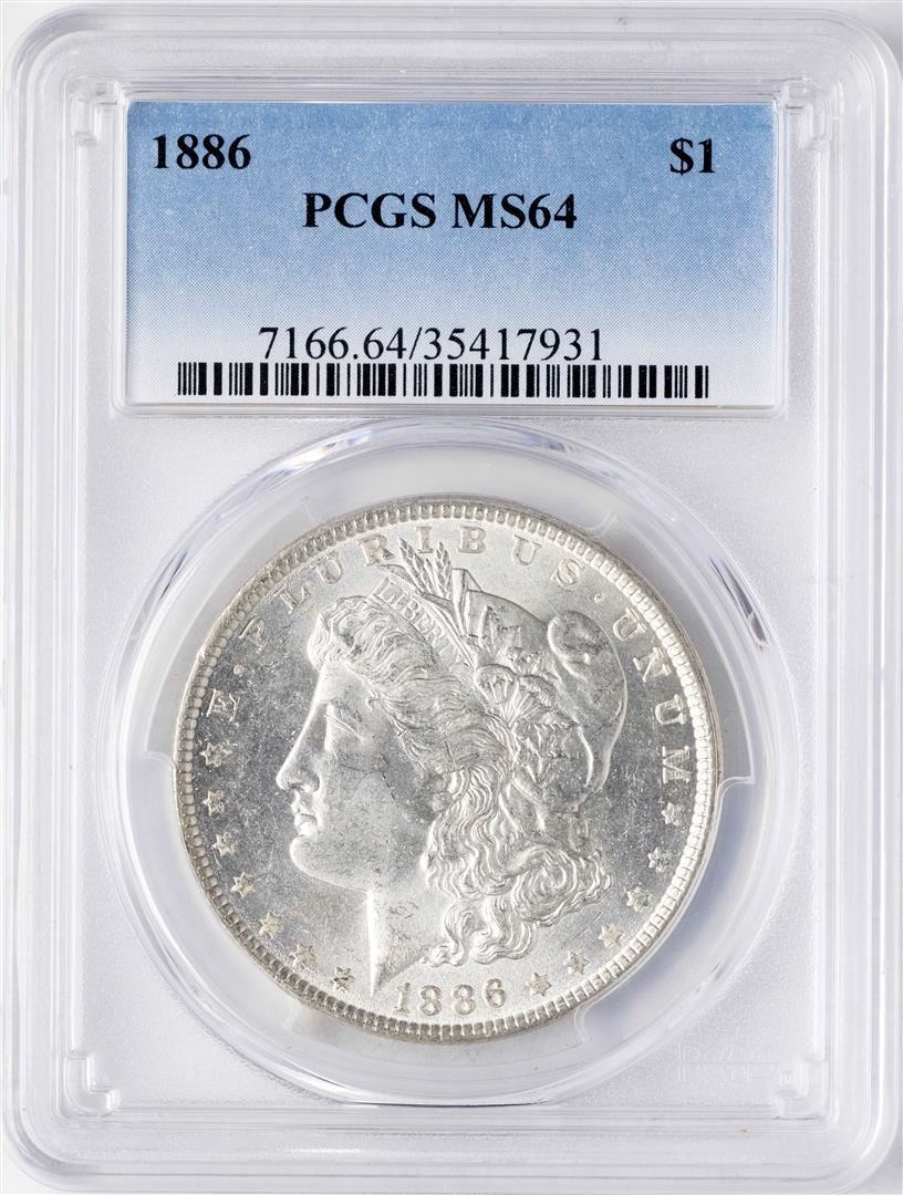 One 1886 $1 Morgan Silver Dollar Coin PCGS MS64. PCGS Graded.