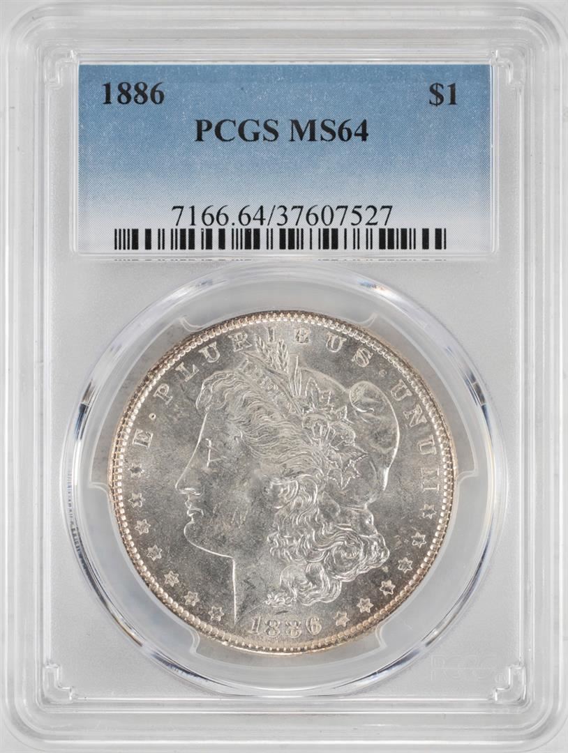 One 1886 $1 Morgan Silver Dollar Coin PCGS MS64. PCGS Graded.