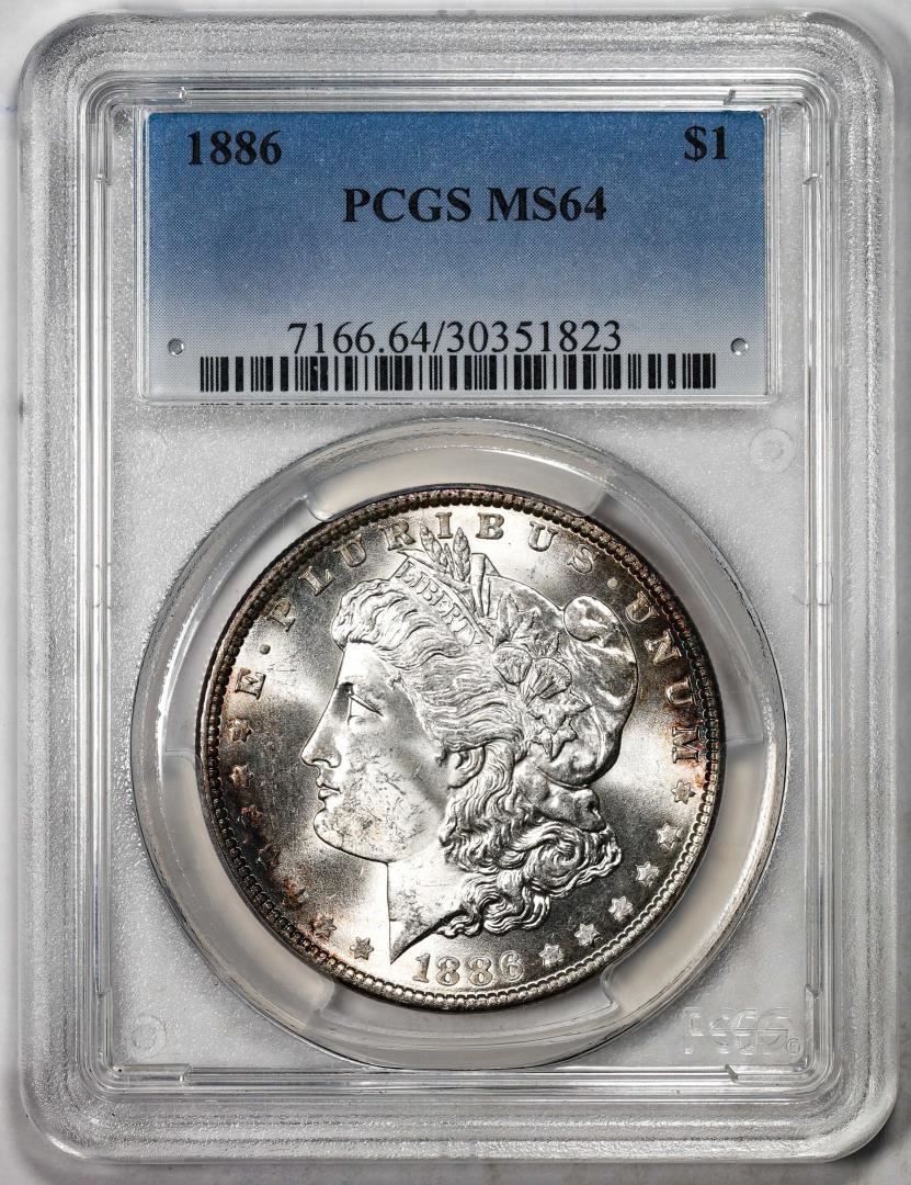 One 1886 $1 Morgan Silver Dollar Coin PCGS MS64. PCGS Graded.
