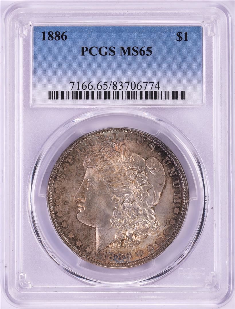 One 1886 $1 Morgan Silver Dollar Coin PCGS MS65 Nice Toning. PCGS Graded.