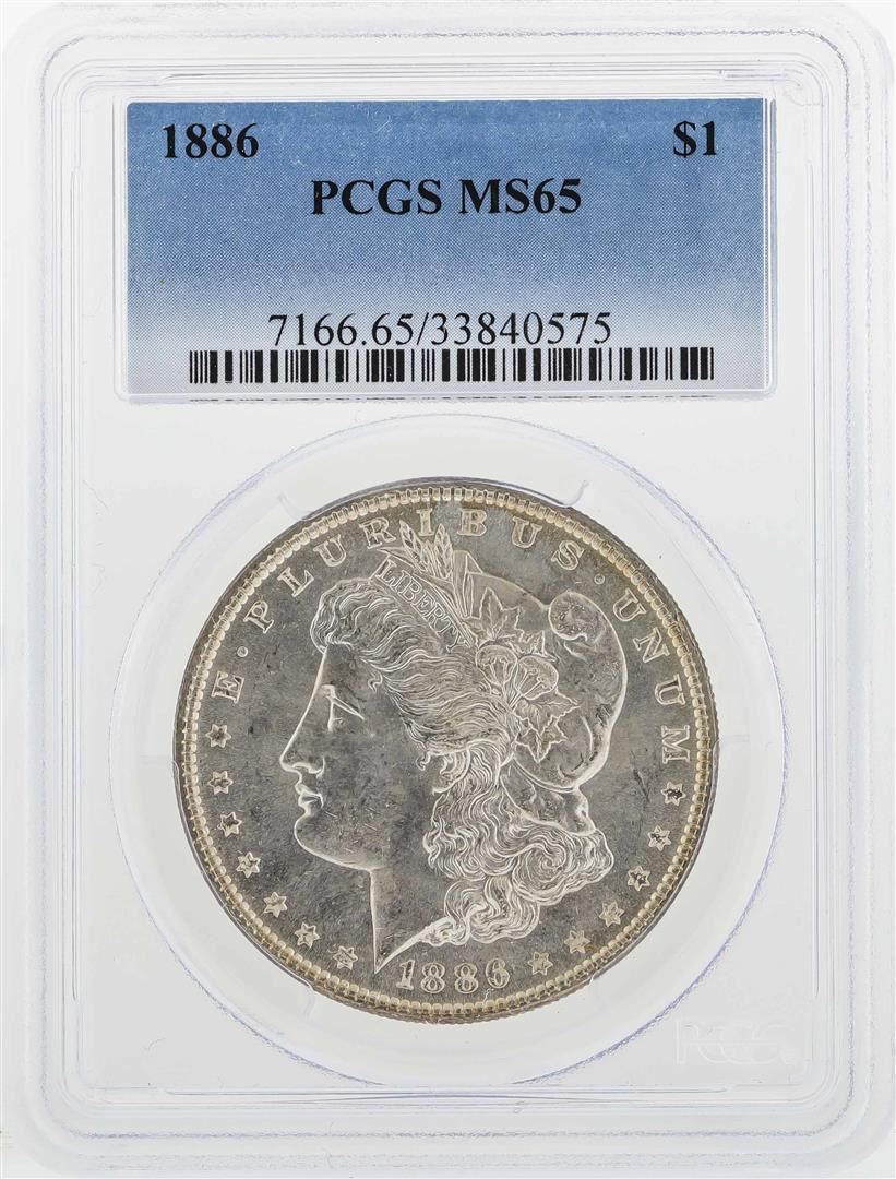 One 1886 $1 Morgan Silver Dollar Coin PCGS MS65. PCGS Graded.
