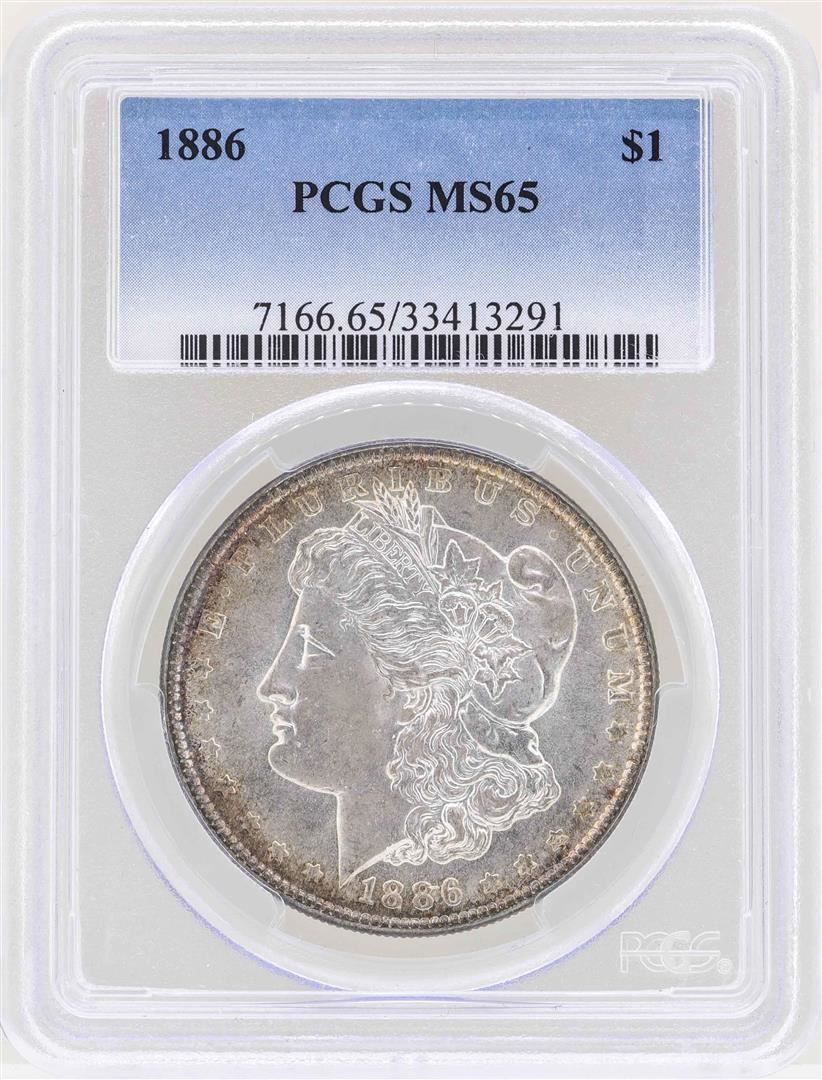 One 1886 $1 Morgan Silver Dollar Coin PCGS MS65. PCGS Graded.