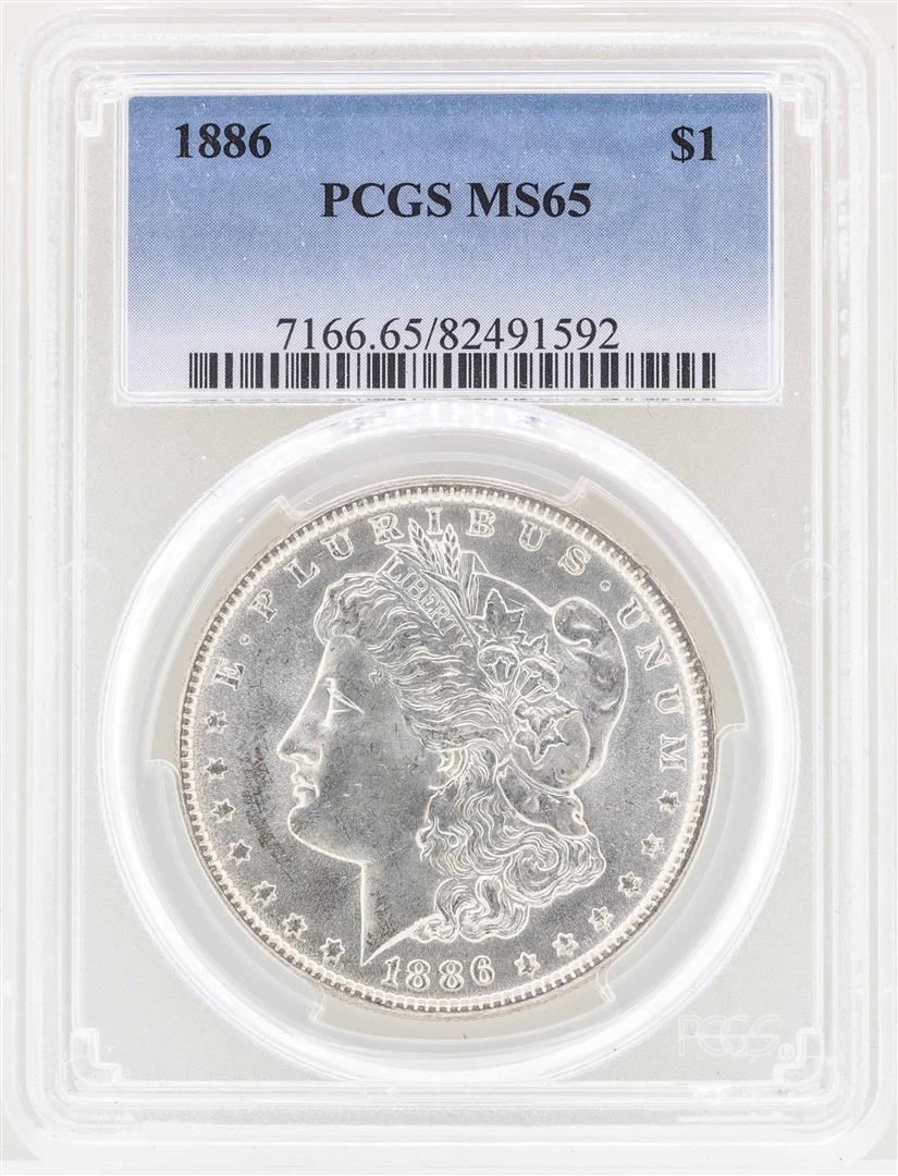 One 1886 $1 Morgan Silver Dollar Coin PCGS MS65. PCGS Graded.