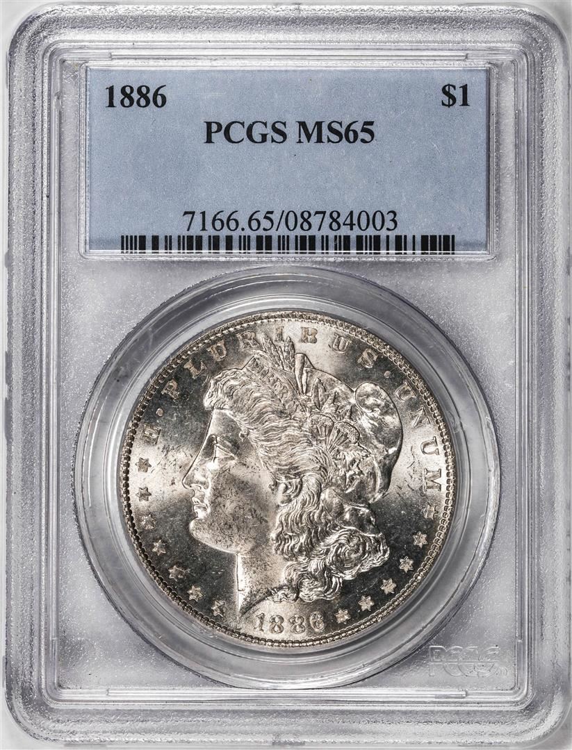 One 1886 $1 Morgan Silver Dollar Coin PCGS MS65. PCGS Graded.