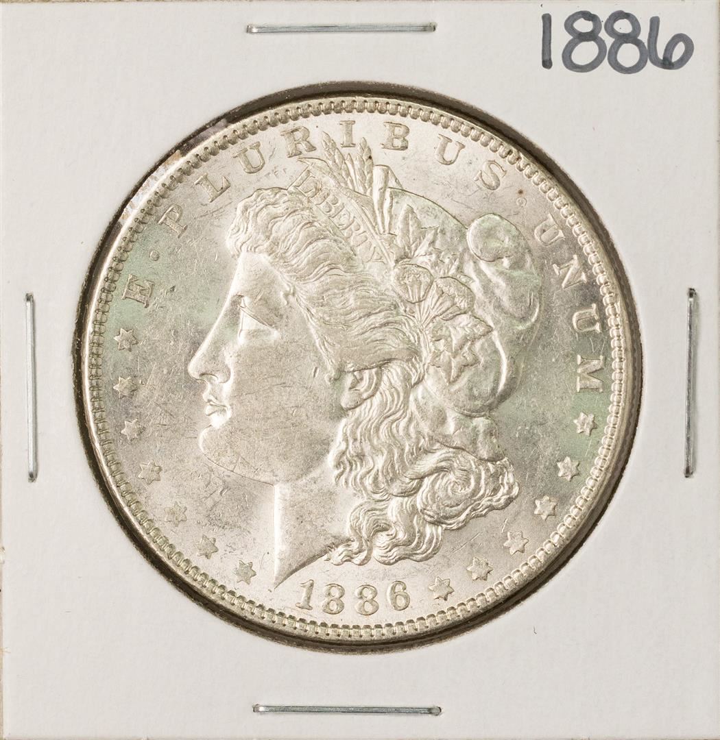 One 1886 $1 Morgan Silver Dollar Coin.