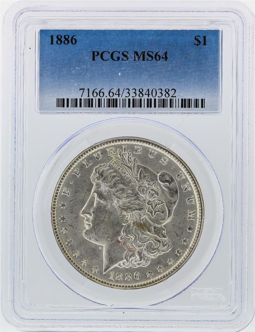 One 1886 $1 Morgan Silver Dollar PCGS Graded MS64. PCGS Graded.