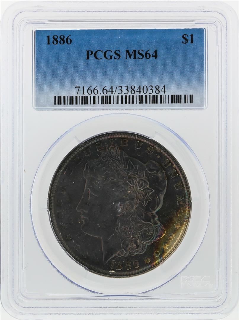 One 1886 $1 Morgan Silver Dollar PCGS Graded MS64. PCGS Graded.