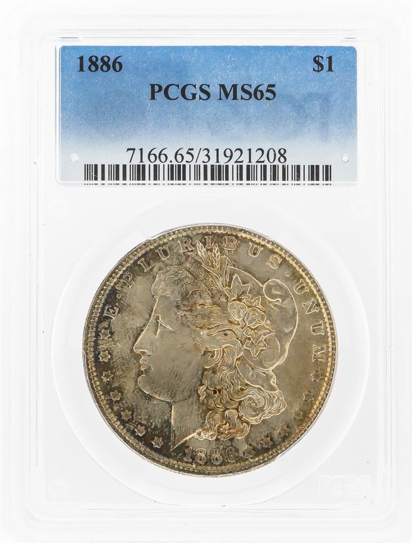 One 1886 $1 Morgan Silver Dollar PCGS Graded MS65. PCGS Graded.