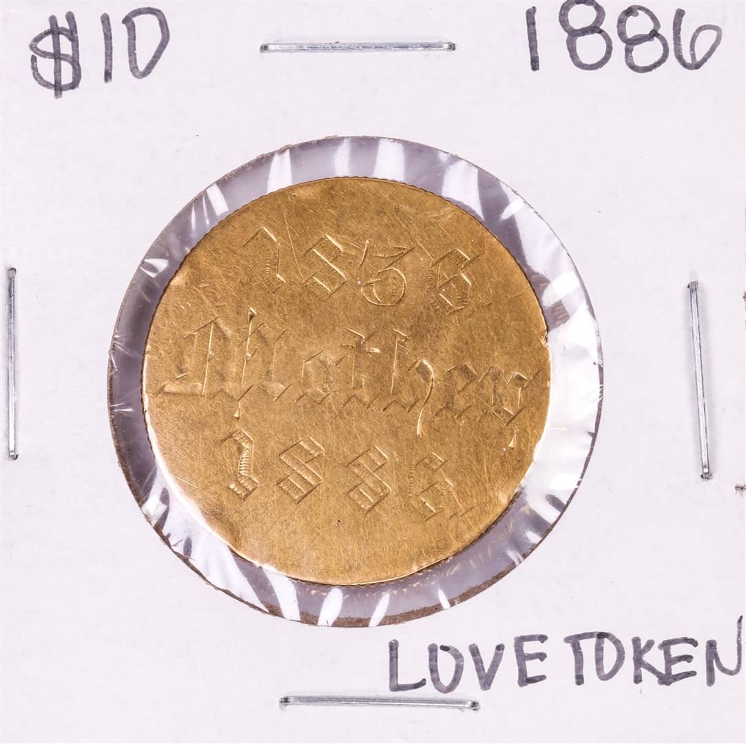 One 1886 $10 Liberty Head Eagle Gold Love Token Coin Pin.