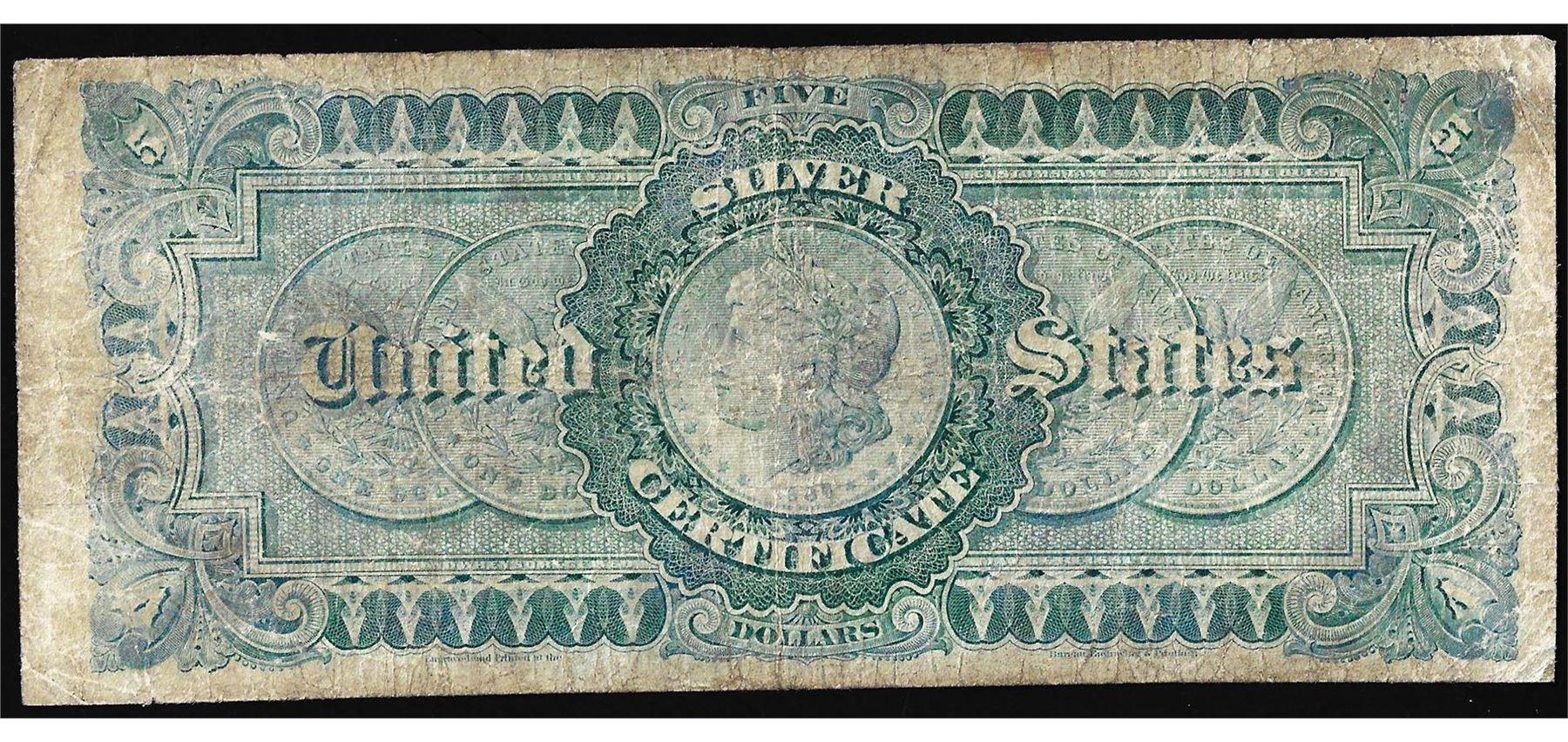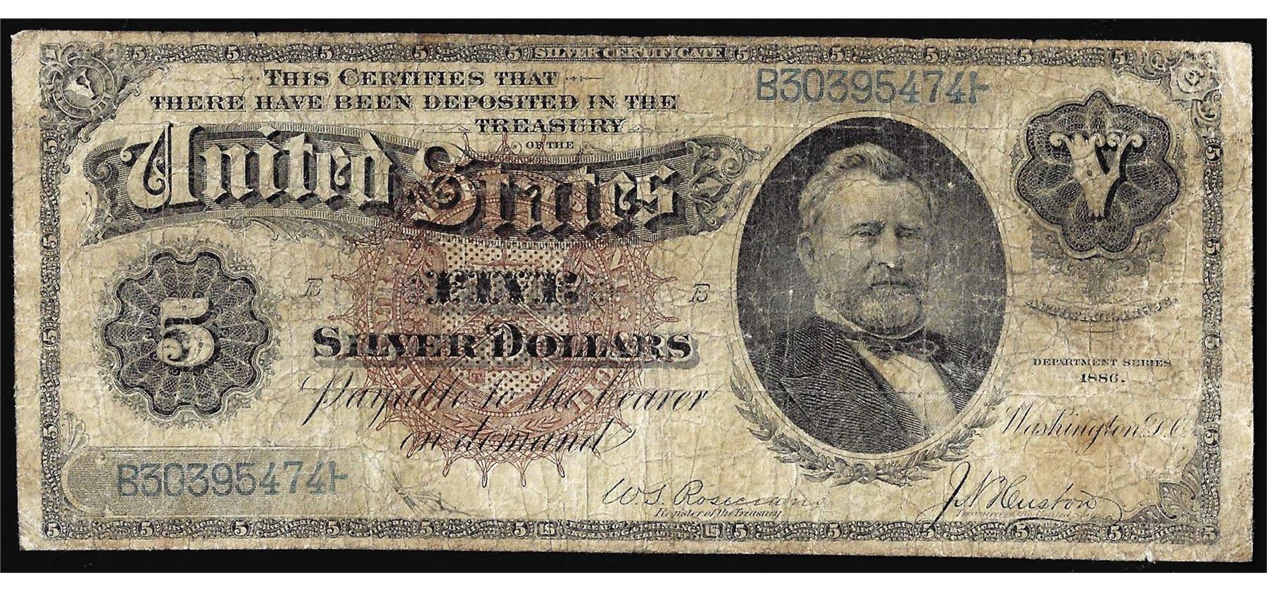 One 1886 $5 "Morgan Dollar Back" Silver Certificate Note.