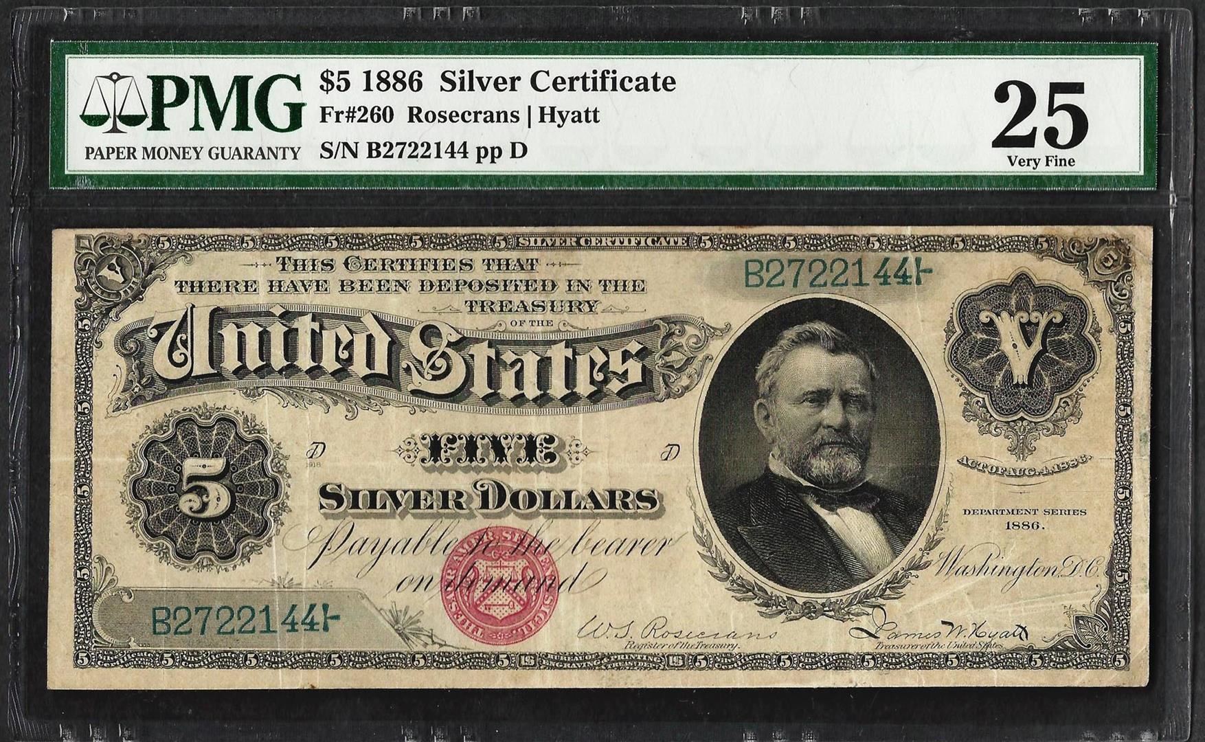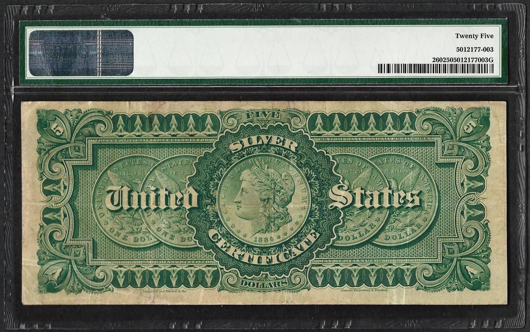 One 1886 $5 Silver Certificate Note Fr.260 PMG Very Fine 25. PMG Certified.