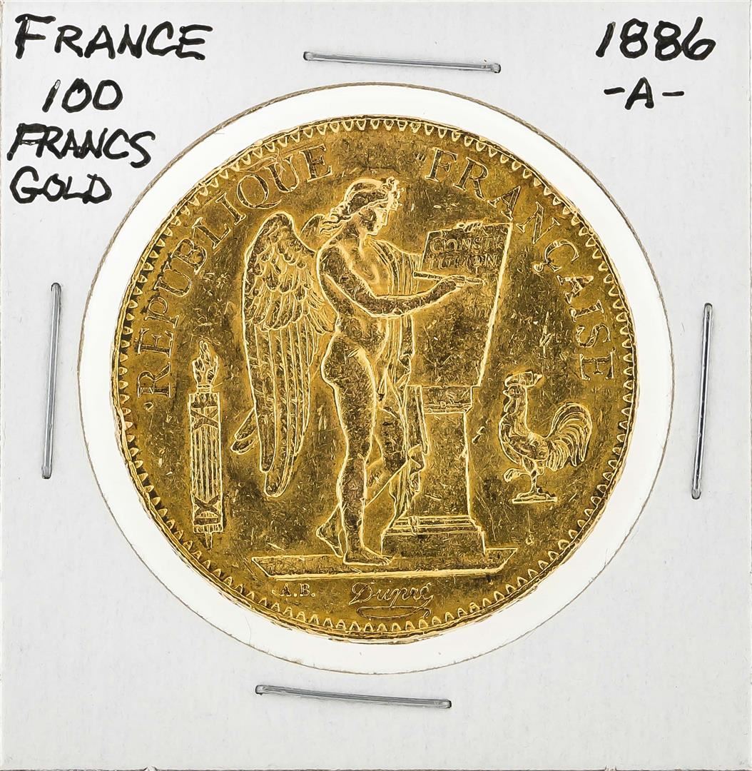 One 1886-A France 100 Francs French Angels Gold Coin.