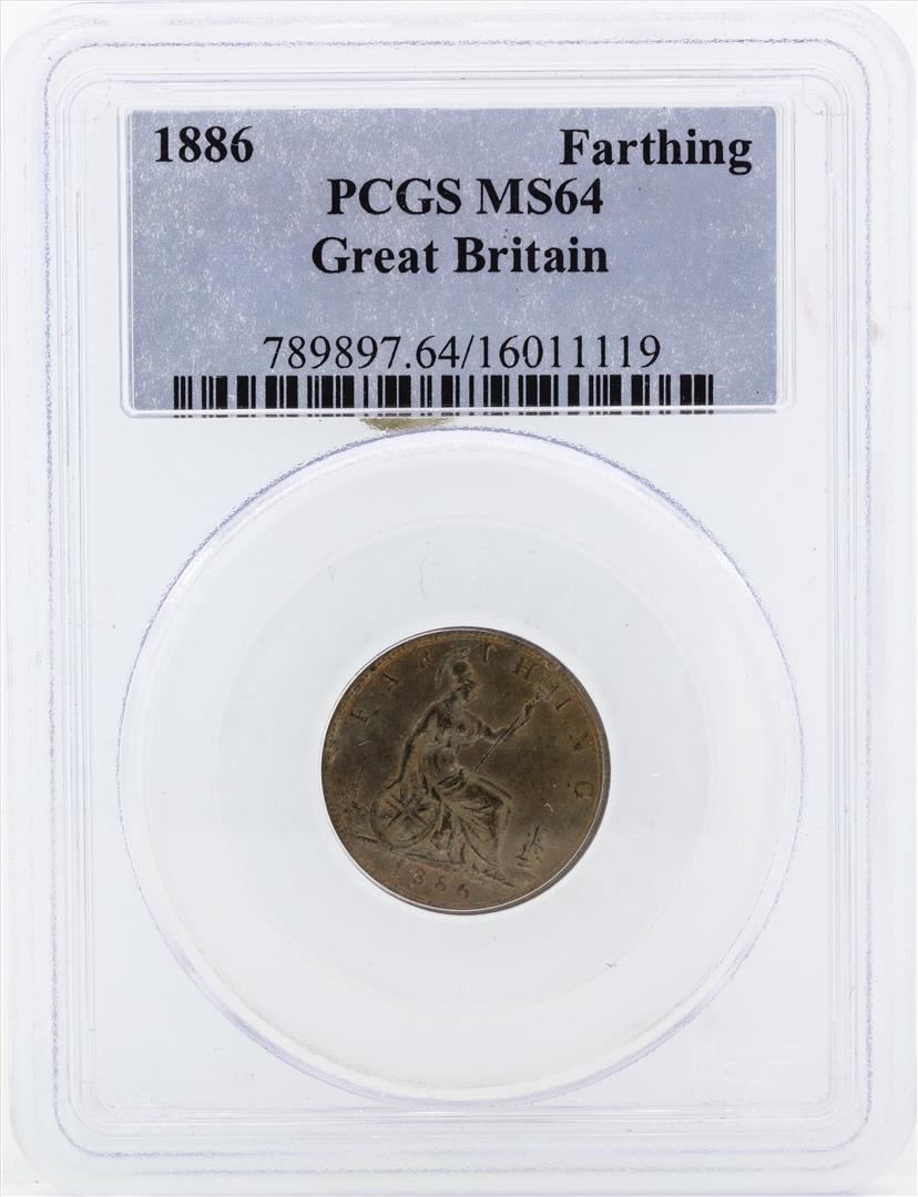One 1886 Great Britain Farthing Coin PCGS MS64. PCGS Graded.