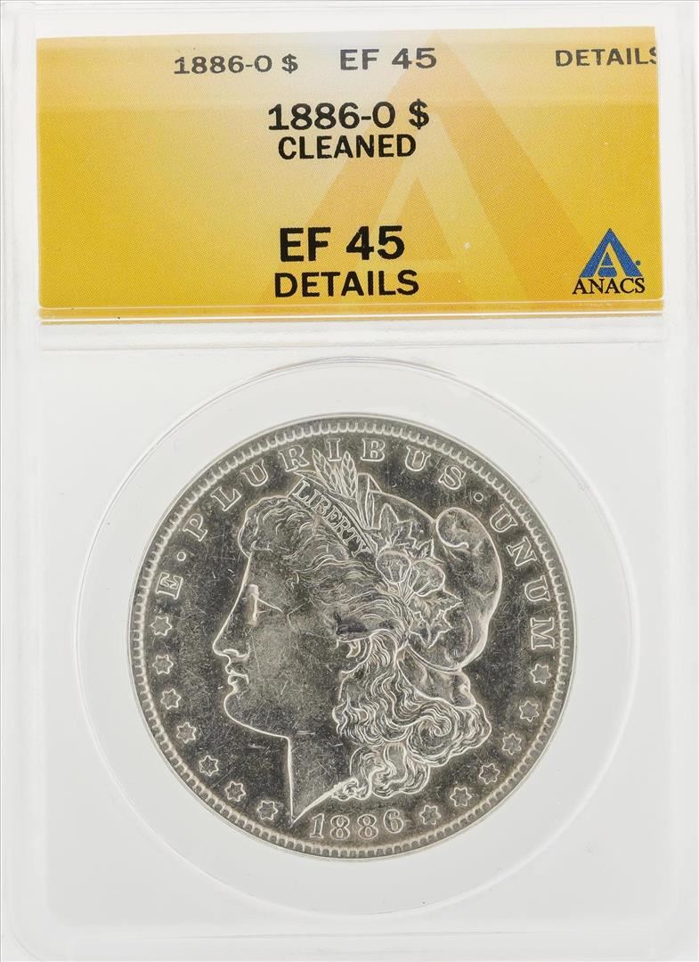 One 1886-O $1 Morgan Silver Dollar Coin Cleaned ANACS EF45 Details. ANACS Certified.