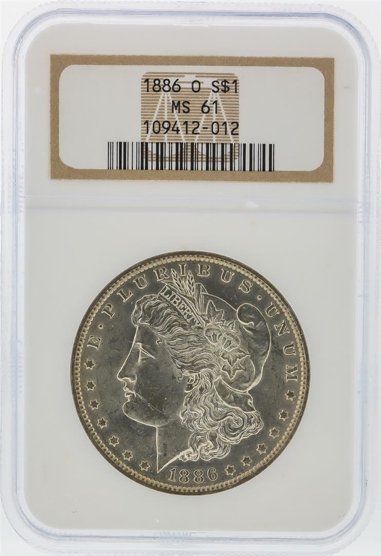 One 1886-O $1 Morgan Silver Dollar Coin NGC Graded MS61. NGC Certified.