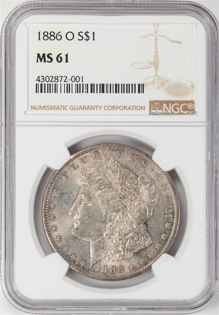 One 1886-O $1 Morgan Silver Dollar Coin NGC MS61. NGC Certified.