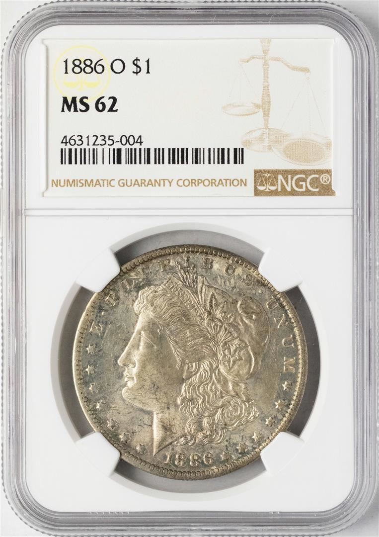 One 1886-O $1 Morgan Silver Dollar Coin NGC MS62. NGC Certified.