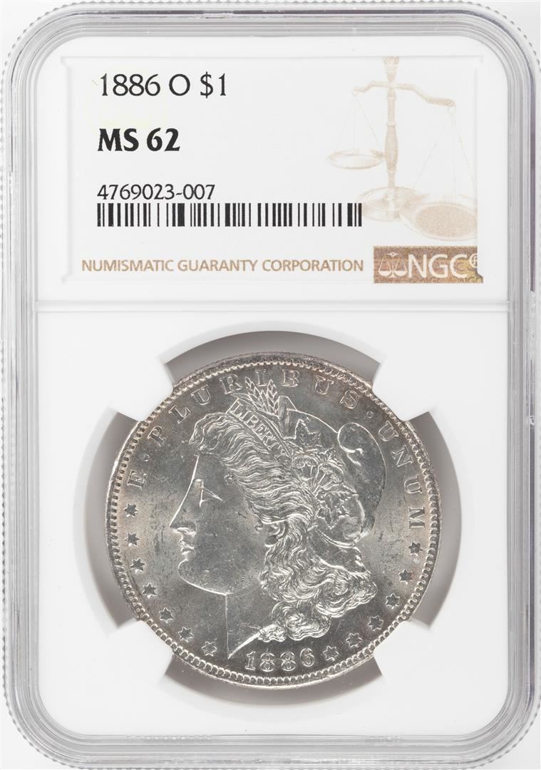 One 1886-O $1 Morgan Silver Dollar Coin NGC MS62. NGC Certified.