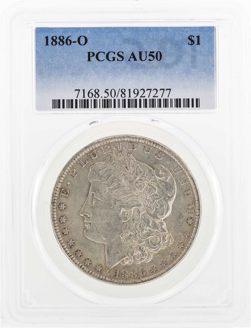 One 1886-O $1 Morgan Silver Dollar Coin PCGS AU50. PCGS Graded.