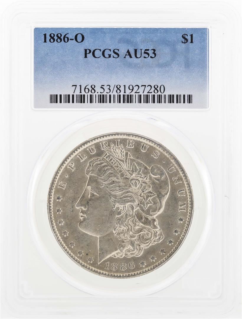 One 1886-O $1 Morgan Silver Dollar Coin PCGS AU53. PCGS Graded.