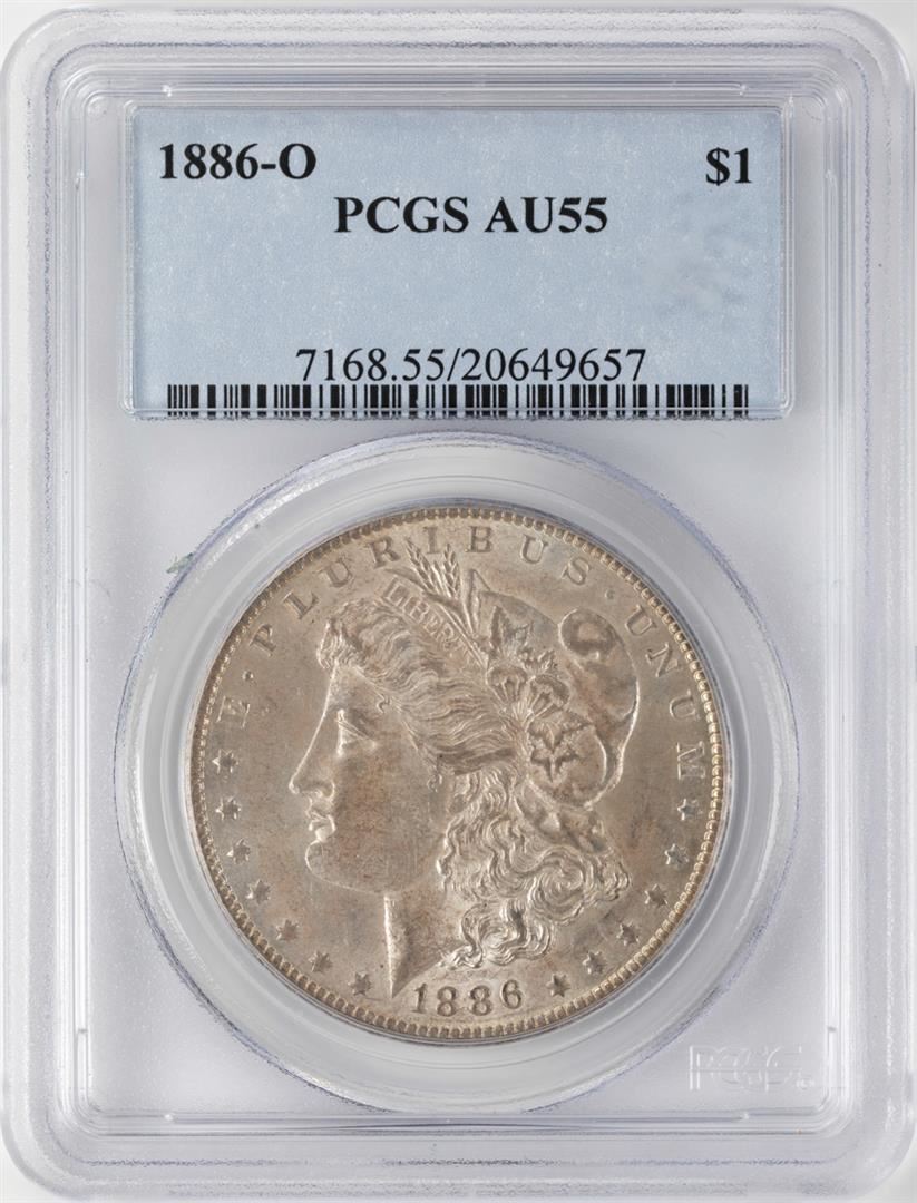One 1886-O $1 Morgan Silver Dollar Coin PCGS AU55. PCGS Graded.