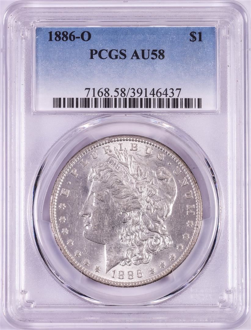 One 1886-O $1 Morgan Silver Dollar Coin PCGS AU58. PCGS Graded.