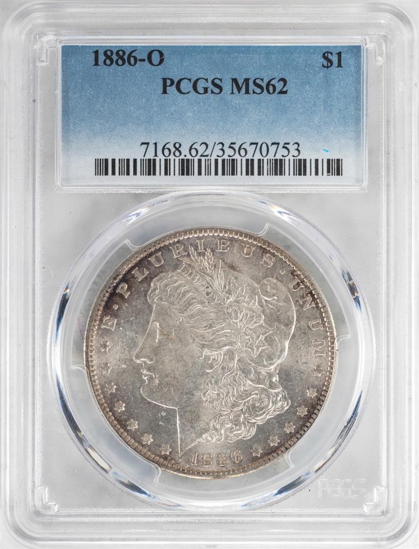 One 1886-O $1 Morgan Silver Dollar Coin PCGS MS62. PCGS Graded.