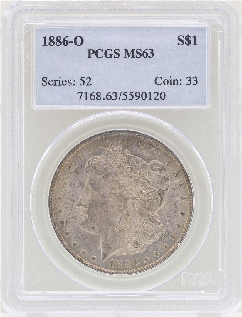 One 1886-O $1 Morgan Silver Dollar Coin PCGS MS63. PCGS Graded.