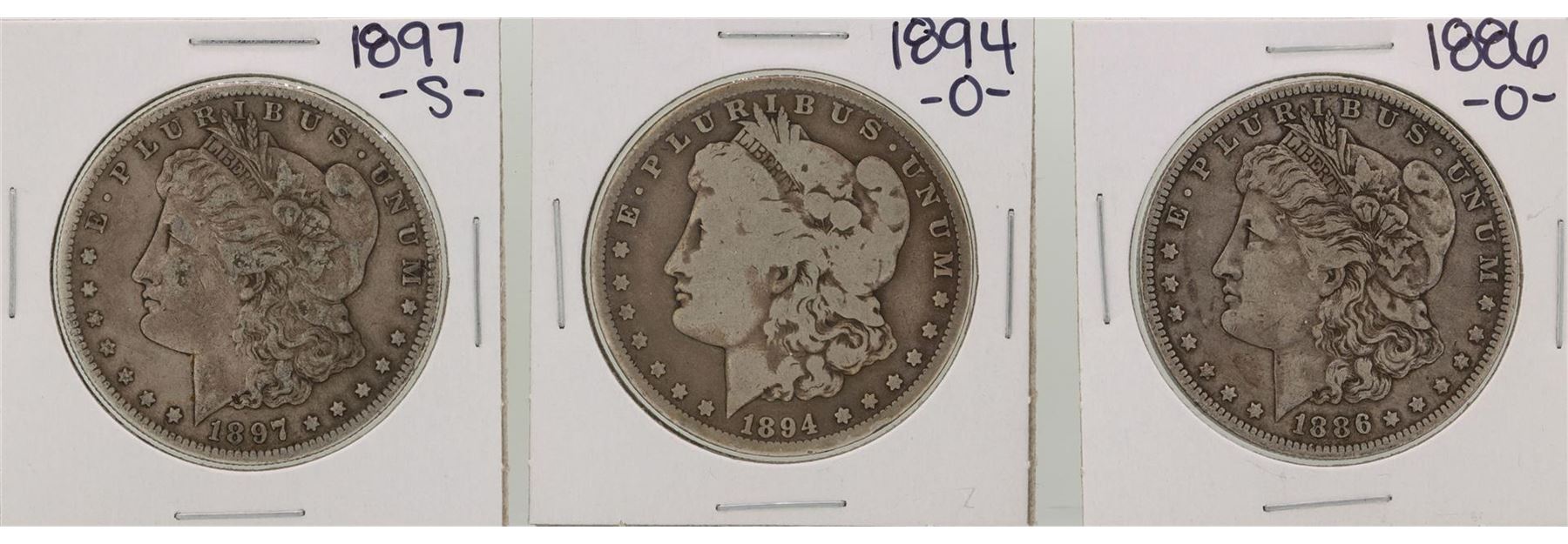 One 1886-O & 1894-O & 1897-S $1 Morgan Silver Dollar Coins.