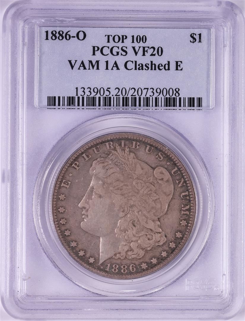 One 1886-O VAM-1A Clashed E $1 Morgan Silver Dollar Coin PCGS VF20 Top 100. PCGS Graded.