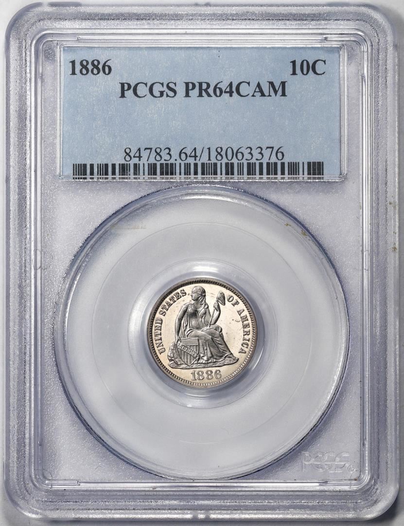 One 1886 Proof Seated Liberty Dime Coin PCGS PR64CAM.