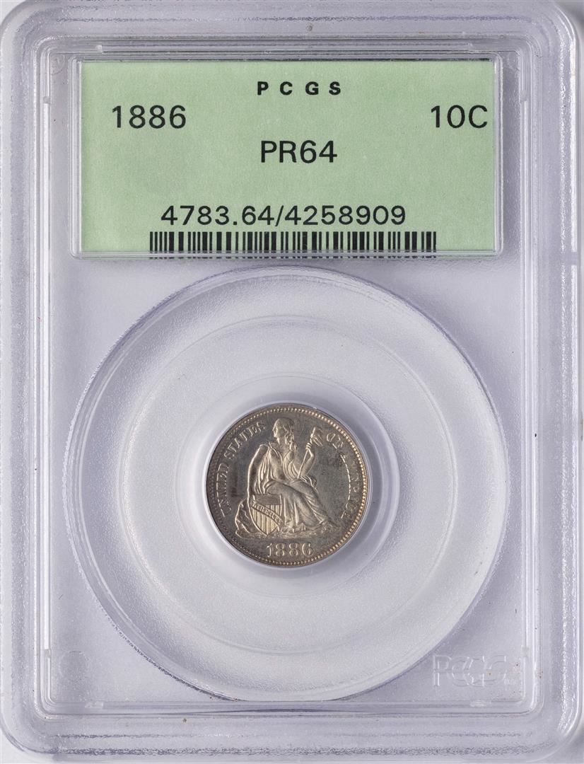 One 1886 Proof Seated Liberty Dime Coin PCGS PR64. PCGS Graded.